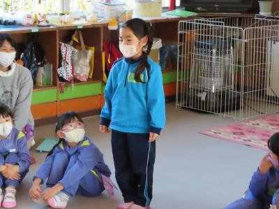 1年生は、お礼として「1年生になったら」の替え歌で「1年生になったよ」を歌いました。かわいく歌いました。
