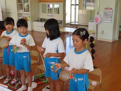 幼稚園には無い楽器もあり、小学生の説明を聞きながら、楽しく音を奏でていました。