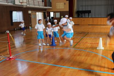 鬼遊びでは、小学生は早歩きのルールの中、園児・児童ともに真剣に動き回っていました。縄跳びでは、練習の成果を発表した園児に、小学生が大きな拍手をしていました。また、小学生が難しい技を飛ぶ様子に園児からも大きな拍手が起こっていました。