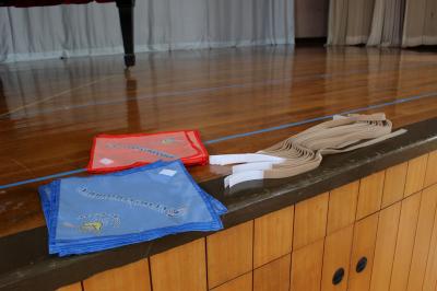 体育館で、全校遊びを行いました。全員マスクを着用し、騒がないよう気を付けながら体を動かしました。