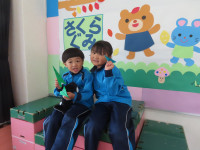 1年生が2時に下校するため、今日は2年生の2人で授業を受けています。