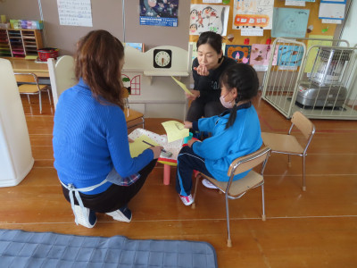 おうちの人と一緒に活動できて三人とも、とてもうれしそうでした。