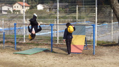 年少さんは遊具をバランスよく登って滑り台を楽しみました。