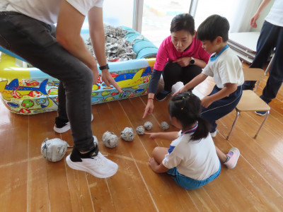年長さんが年少さんに「これは何?」と優しく聞いたり、教えたりしていました。