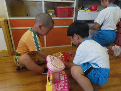 今日は、美川幼稚園の2名が畑野川幼稚園に来てくれました。