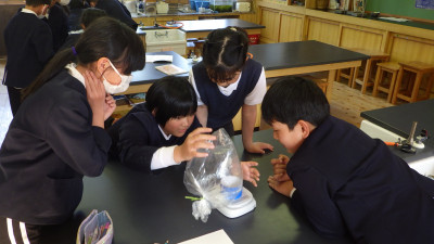 1・2年生は、音楽の授業です。「みつけたおとでこえあそび」の学習でまねっこ遊びをしていました。一人が身近な音を上手に声で表現し、他の二人がその音をまねしたり、何の音を表現しているか当てたりしていました。とても楽しい雰囲気で学習していました。