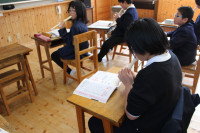 1年生が2時に下校するため、今日は2年生の2人で授業を受けています。